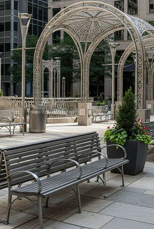 Архитектурные формы из металла это изделия, которые создают удобство и внешний облик территории. Они используются в благоустройстве дворов, парков и набережных, на территориях жилых комплексов, школ, больниц, офисных центров и производственных площадок. Металл выбирают за прочность, устойчивость к нагрузкам и аккуратный вид при правильной защите поверхности. Такие изделия помогают организовать пространство, направить потоки людей, выделить зоны отдыха, добавить тень и укрытие от осадков, повысить безопасность. Металлические конструкции часто дополняют элементами из дерева, чтобы сделать контактные поверхности теплее и комфортнее. Деревом обычно выполняют сиденья и спинки скамеек, настилы, облицовочные планки, подлокотники, столешницы, декоративные панели и элементы ограждений. Сочетание металла и дерева хорошо работает там, где важны и срок службы, и приятное тактильное ощущение.