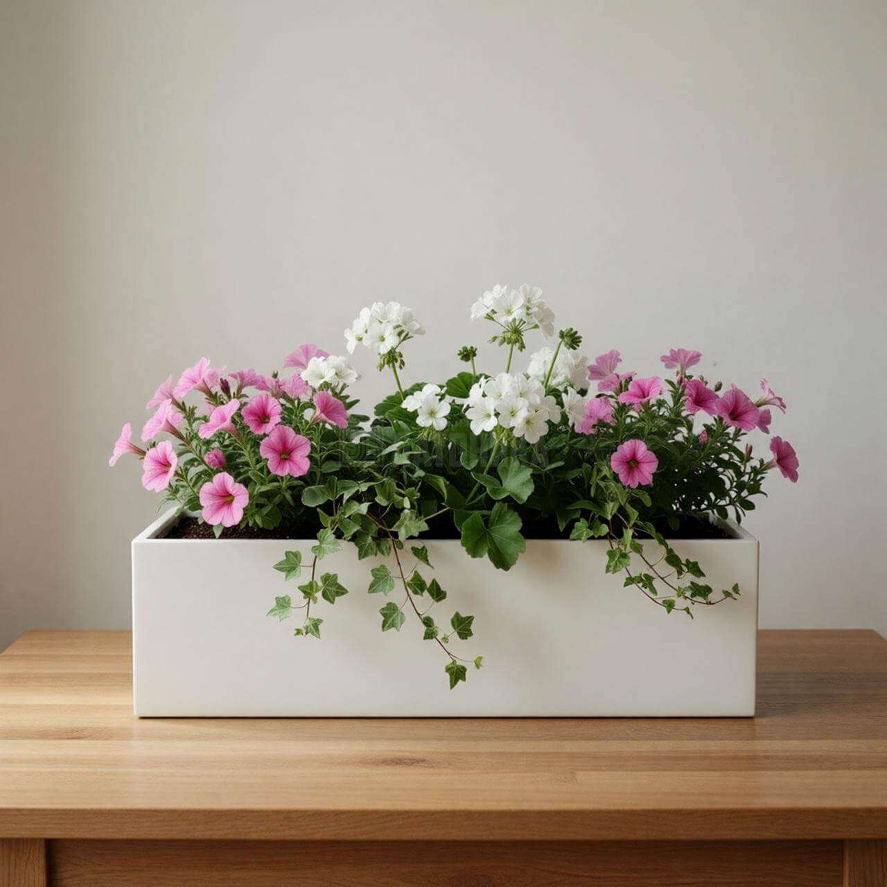 Металлическое кашпо «Оазис» это лаконичный прямоугольный бокс для посадки цветов и зелени на подоконнике, столе или витрине. Жесткий каркас с ровной геометрией держит форму и делает композицию аккуратной. Модель выполнена в белом цвете с порошковым покрытием, размеры под заказ, возможна окраска в любой оттенок RAL. Идеальный акцент для современных интерьеров и коммерческих пространств.