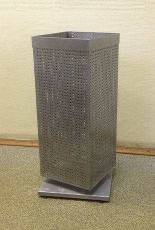 Материал из которого изготавливаются рекламные стенды — перфорированный металл, производится порошковая покраска изделий, цвет подбирается по каталогу RAL, который содержит более 200 различных оттенков. Также возможно изготовление конструкций на заказ по необходимым размерам и брендирование изделий.