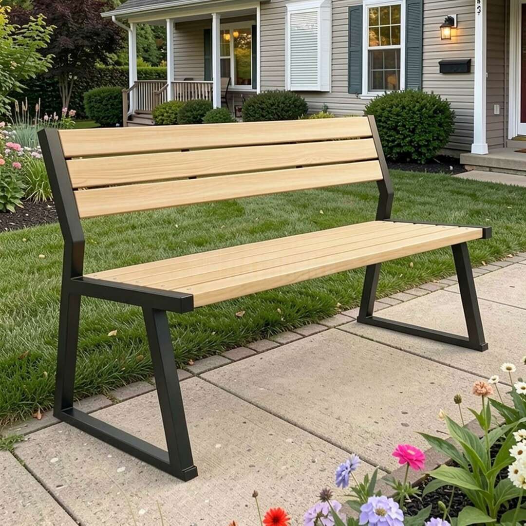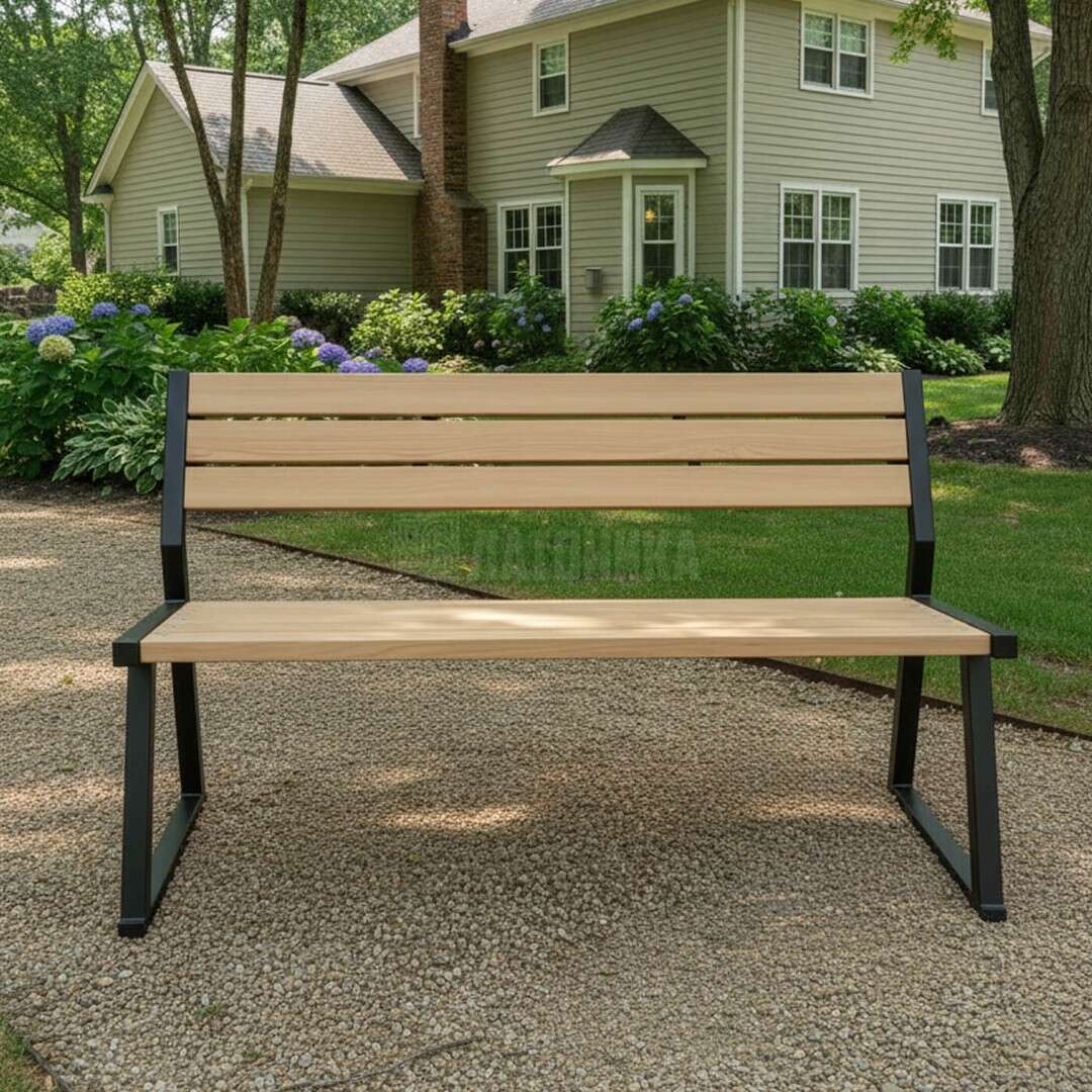 - Эстетичный дизайн: лавочка выглядит легко, современно и аккуратно, хорошо вписывается в садовые, парковые и городские пространства.