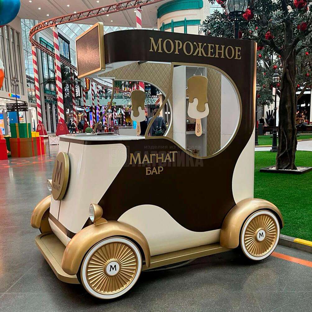 Передвижная точка для продажи мороженого «Круиз» станет эффектным решением для яркой презентации продукции в торговых центрах, на промо площадках, фестивалях и сезонных мероприятиях. Конструкция привлекает внимание за счет выразительного дизайна, помогает выделить бренд в пространстве и создает запоминающийся визуальный образ. Такое изделие не только выполняет практическую функцию торговой точки, но и работает как полноценный рекламный носитель, усиливая узнаваемость продукции и формируя привлекательную зону продаж.
