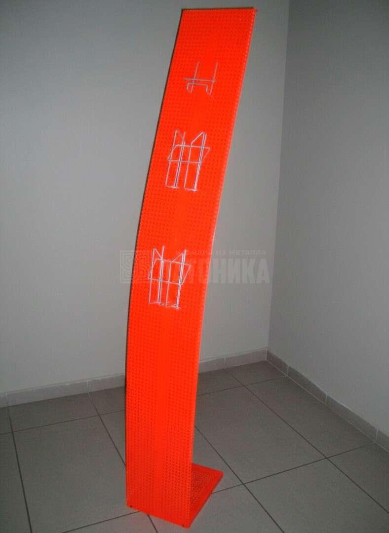 Напольные изделия выполнены из перфорированного металла, благодаря чему имеют хорошую устойчивость. Перфорация позволяет располагать на стойке карманы разных габаритов в нужном порядке – потенциальные партнеры сами решат, какие промо материалы им более интересны. Окраска изделия в необходимый цвет по каталогу RAL способствует лучшему восприятию Вашего бренда.